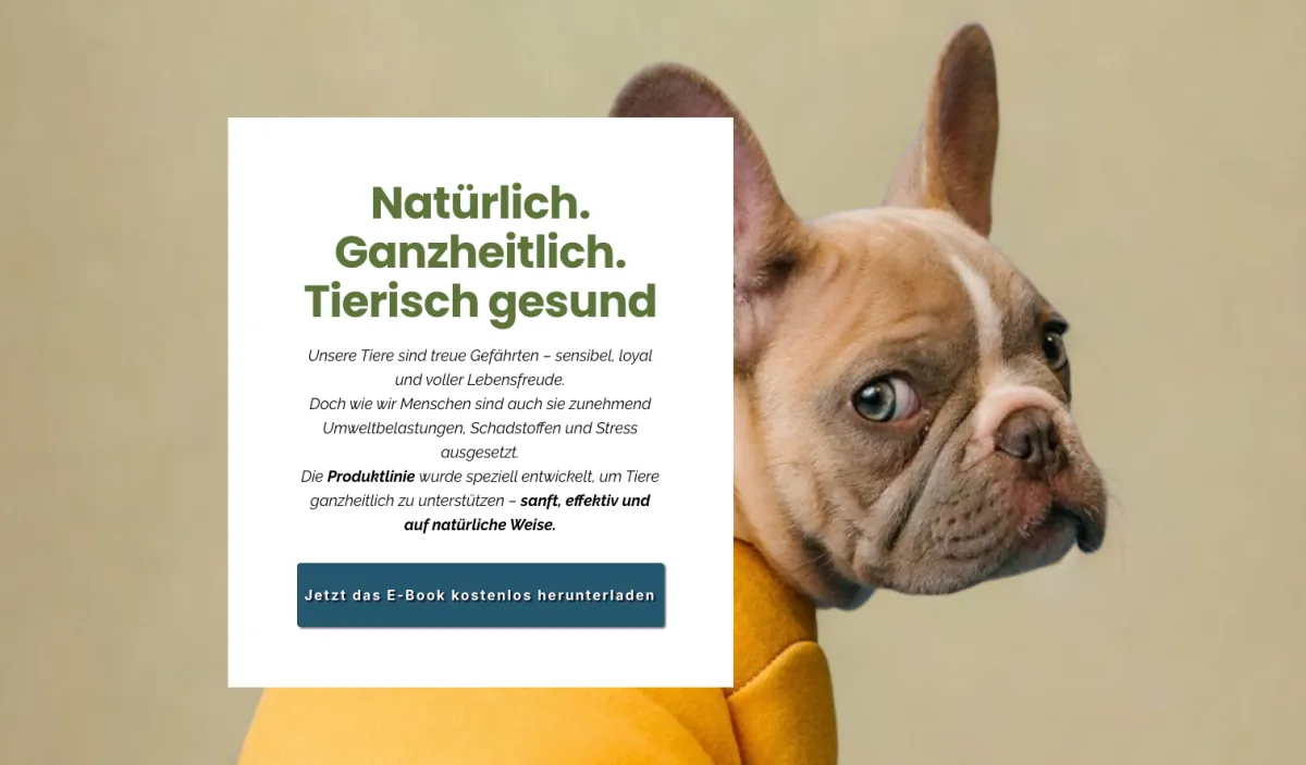Deine Landingpage für Tiergesundheit, mit E-book und automatisierter Email Abfolge