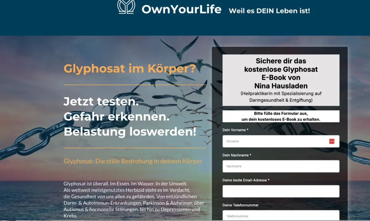 Deine Landingpage zum Thema Glyphosat , testbasiert mit E-book und automatisierter Email Abfolge