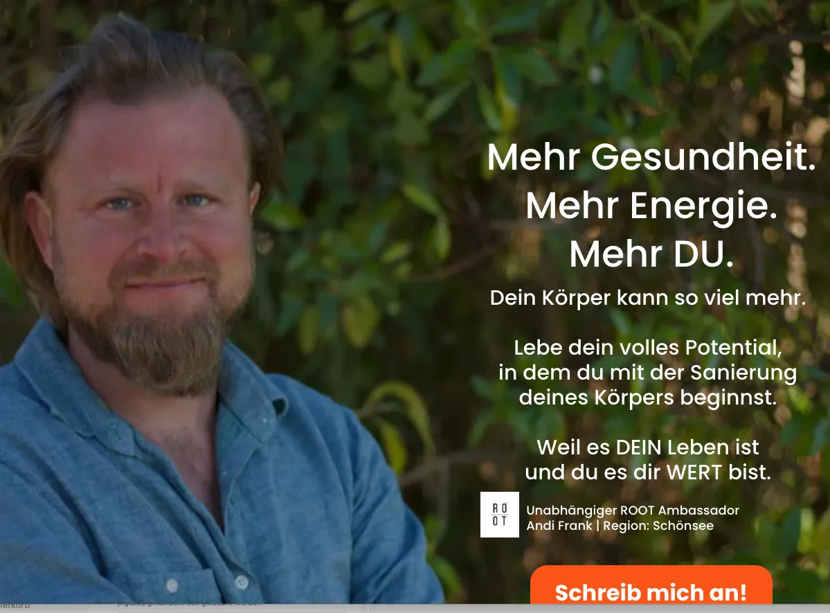 Deine Landingpage auf dich persönlich angepasst, in der sich deine Interessenten einen Eindruck über ROOT und deren Produkte verschaffen und mit dir in Kontakt treten können.